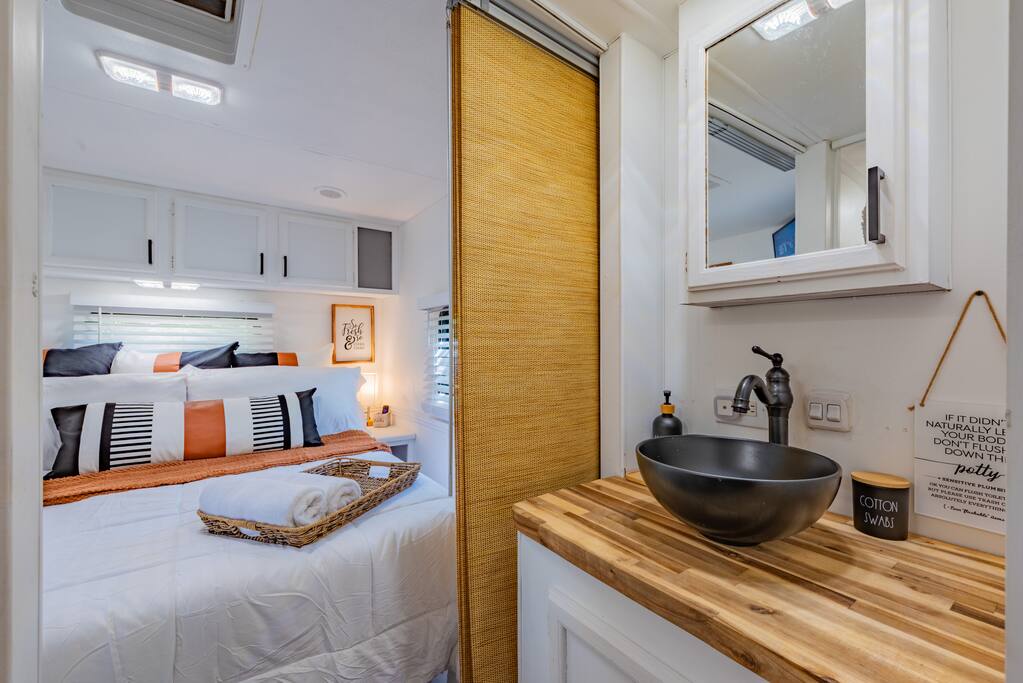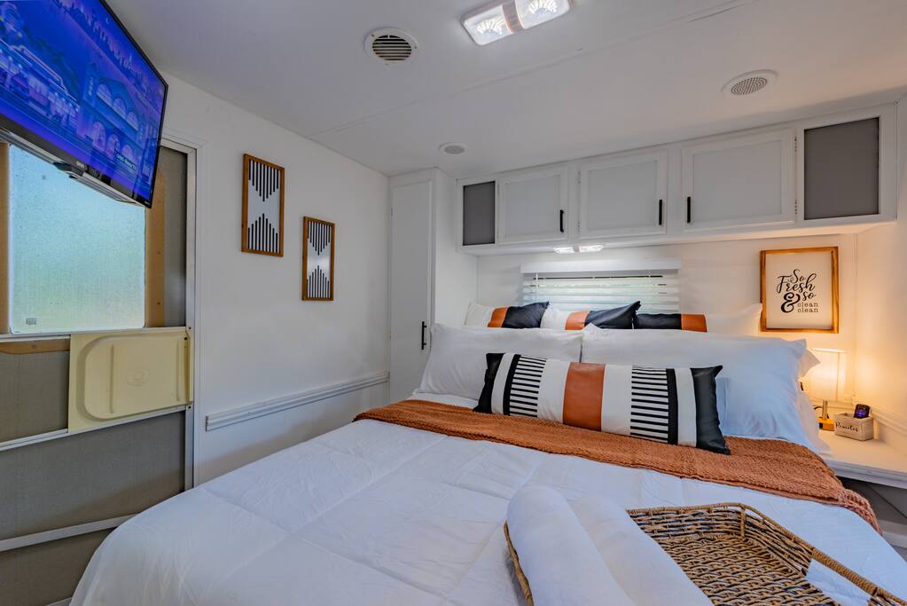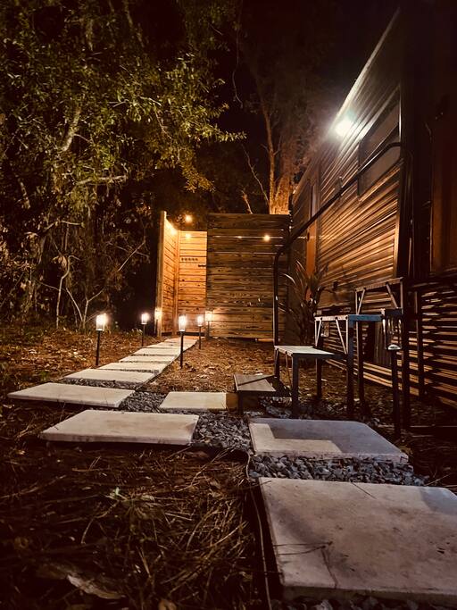 Experience a private, cozy cabin vibe at Rustic Retreat — a tiny home-style RV featuring a one-of-a-kind outdoor rain shower and soft evening lights that set the mood. Just 5 minutes from The Krates at the Grove and 9 minutes from Epperson Lagoon, this charming stay offers modern comfort and peaceful outdoor spaces. Perfect for couples, solo travelers, or anyone seeking calm, this unique retreat blends privacy, nature, and convenience for an unforgettable Wesley Chapel getaway near Tampa.